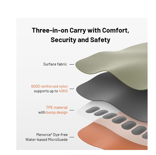 Podloga iz TPE z izbočenim dizajnom poveča udobje med dolgimi snemanji, hkrati pa zagotavlja varnost kamere. Pas je lahek, tehta le 70 g, in je zasnovan za dolgotrajno uporabo, ne da bi obremenjeval vrat ali ramo. Eleganten meteorito siva barva doda sodoben, profesionalen videz vaši opremi za kamero.
