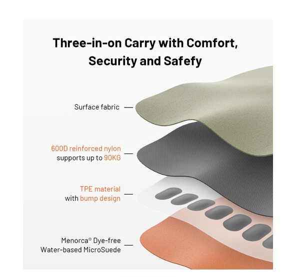 Podloga iz TPE z izbočenim dizajnom poveča udobje med dolgimi snemanji, hkrati pa zagotavlja, da vaš fotoaparat ostane varen. Sodoben večbarvni dizajn traku dodaja vaši opremi stilski pridih, ne da bi pri tem ogrožal funkcionalnost. Ta trak je lahek, a robusten, tehta le 77 g in je idealni spremljevalec tako za profesionalne kot za ljubiteljske fotografe.