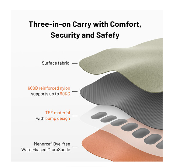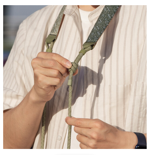 Pleteni Dyneema trak z zaponkami za hitro pritrditev omogoča enostavno pritrditev ali odstranitev kamere, hkrati pa podpira nosilnost do 90 kg. Podloga iz TPE z izbočenim vzorcem dodaja udobje in preprečuje zdrsavanje, tudi med daljšo uporabo. Ta trak, zasnovan tako, da je zračen, lahek in eleganten s svojim geometrijskim vzorcem, je idealen tako za ljubiteljske kot profesionalne fotografe.