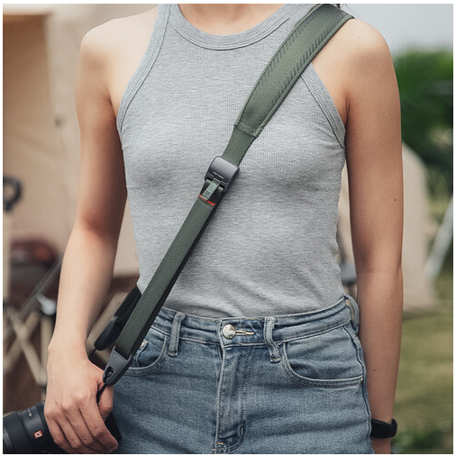 Svoj fotoaparat lahko nosite samozavestno in udobno s pomočjo temno modrega ramenskega pasu za fotoaparat PGYTECH P-CB-121. Ta pas, zasnovan za fotografe in videografe, se lahko nosi prek ramena, okoli vratu ali prek telesa. Njegovi hitro snemljivi konektorji z uporabo mehanizma za zaklepanje v mrtvi točki zagotavljajo varno pritrditev, medtem ko nastavljiva dolžina zagotavlja popolno prileganje. Tristranske tkane zanke – vključno z zunanjo plastjo, odporno proti obrabi, notranjo plastjo, ki opozarja na potrebo po zamenjavi, in nosilnim jedrom iz UHMWPE – ponujajo neverjetno trdnost in podpirajo kamere do teže 90 kg. Ta trak, združljiv s ploščami za hitro sprostitev tipa Arca, združuje trajnost, stil in udobje z EPDM oblazinjenjem in aerodinamičnim dizajnom.