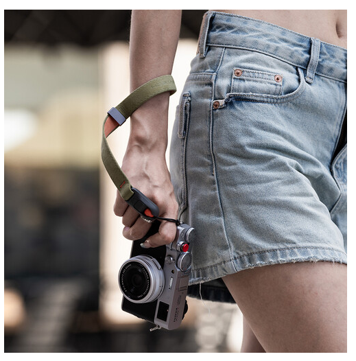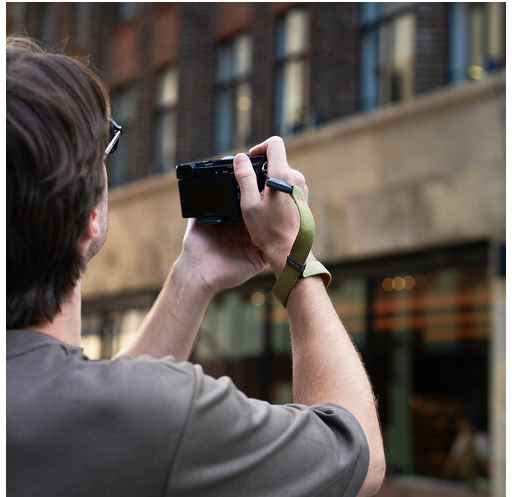Za dodatno udobje skriti magnetni zaponka omogoča, da se trak nosi kot zapestnica, ko ni pritrjen na fotoaparat. S hitrimi sponkami in vgrajeno zaščito pred naključnim padcem ta zapestni trak zagotavlja varnost in enostavnost uporabe za fotografe, ki so v gibanju.