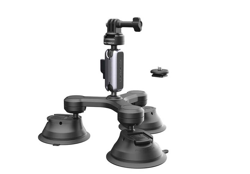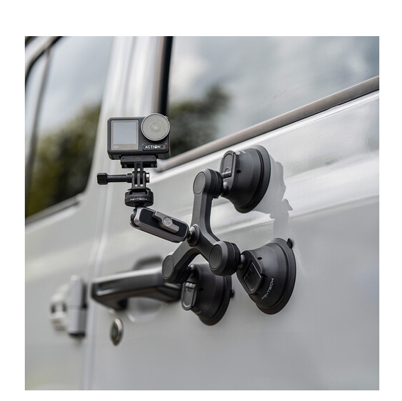 Z PGYTECH 3-Arm Suction Mount lahko snemate stabilne posnetke profesionalne kakovosti na vozilih ali ravnih površinah. Ta nosilec ima tri močne priseske, CapLock glavo z hitrim sprostilnim mehanizmom in 360° nastavljivo vrtenje, kar zagotavlja maksimalno stabilnost in vsestransko pozicioniranje kamere za akcijske kamere in pametne telefone.