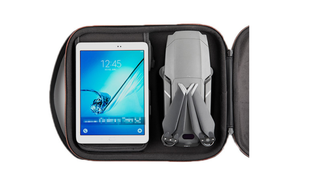 Za večjo vsestranskost lahko predal sprejme 7,9-palčni tablični računalnik, če odstranite palčke daljinskega upravljalnika. Dvojni zadrgo in zaščita pred vodo in prahom IP34 zagotavljata, da je vaša oprema zaščitena v različnih okoljih. Torba ima tudi ročaj za nošenje in snemljiv ramenski pas, kar olajša prevoz, ne glede na to, ali potujete po lokalnem območju ali vzamete drona s seboj na pot.