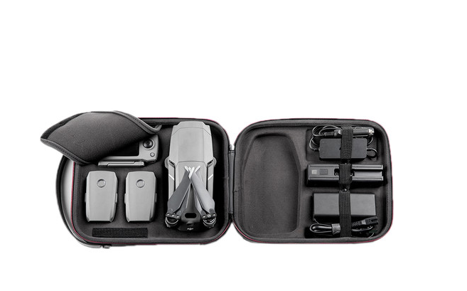 S torbo PGYTECH P-HA-031 za prenašanje lahko varno in organizirano shranite svoj DJI Mavic 2 in njegovo dodatno opremo. Ta trda torba je izdelana iz trpežne EVA plastike in najlona, z notranjostjo, oblikovano po meri, ki vključuje posamezne predale za vaš dron, daljinski upravljalnik, tri do pet baterij, USB-kable, polnilno postajo in avtomobilski polnilnik. Mehka tkanina in pritrdilni trakovi pomagajo, da so vsi predmeti med prevozom varni in se ne premikajo ali poškodujejo.