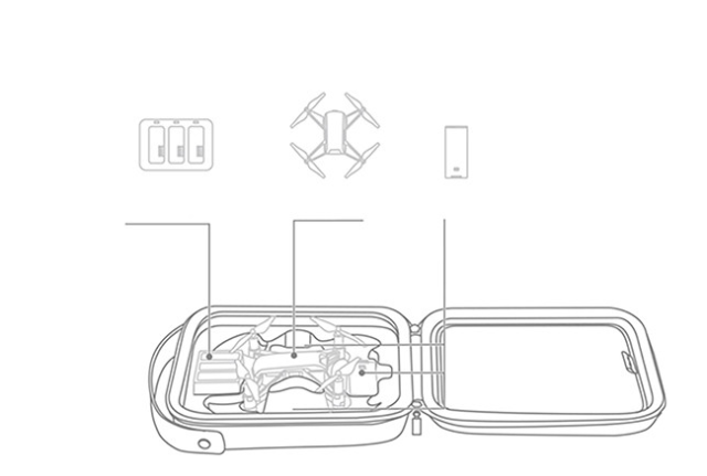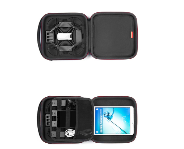 V njej je prostora za drona, zaščito propelerja, baterije, polnilno postajo, USB-kable, SD-kartice, pametni telefon in 7,9-palčni tablični računalnik