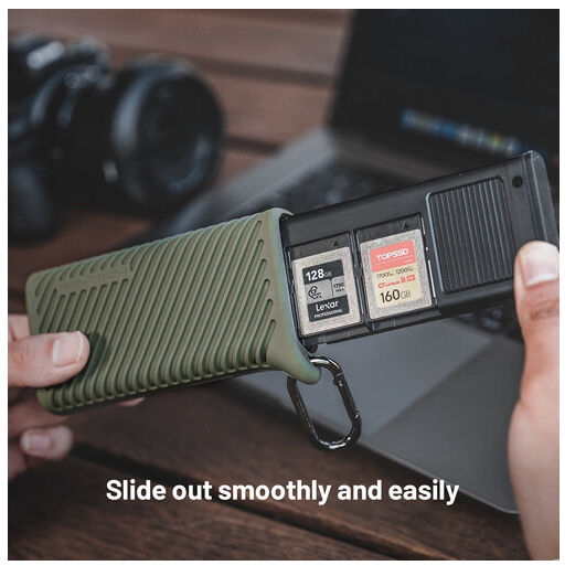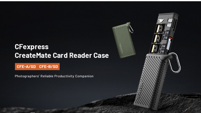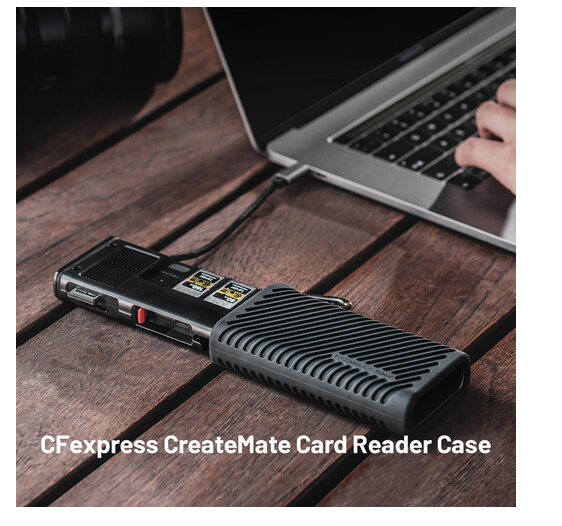 PGYTECH P-GM-168 CreateMate CFexpress Type A/SD Card Reader Case združuje hitro branje kartic in varno shranjevanje za profesionalne fotografe in videografe. Zasnovan je za kartice CFexpress Type A in UHS-II SD, ima sistem z dvojnim režem za kartice, ki omogoča prenos podatkov s hitrostjo do 1000 MB/s za kartice CFexpress Type A in 312 MB/s za kartice SD/microSD. V etuiju je prostora za do 12 kartic, vključno s tremi karticami CFexpress Type A, tremi karticami SD, štirimi karticami microSD in dvema karticama nano SIM, priložen pa je tudi adapter microSD na SD in večnamenski izmetni zatič.