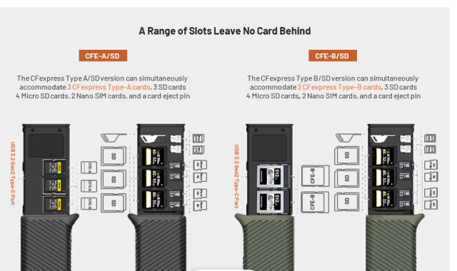 Shrani do 12 kartic: 3 CFexpress tip A, 3 SD, 4 microSD, 2 Nano SIM