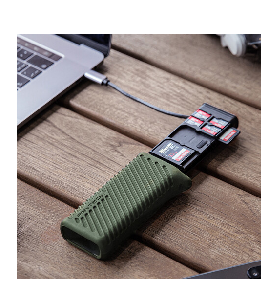 Učinkovito shranjujte, prenašajte in prenašajte pomnilniške kartice s PGYTECH P-GM-162 CreateMate High-Speed Card Reader Case v barvi Moss Green. Ta etui ima reže za kartice UHS-II SDXC in microSDXC, zaščito IP54 in vgrajen kabel USB-C 3.2 Gen 1 ter podpira povezljivost plug-and-play z operacijskimi sistemi Windows, Mac, Linux in Android za hiter in zanesljiv prenos podatkov na poti.