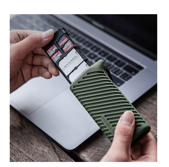 PGYTECH P-GM-162 CreateMate High-Speed Card Reader Case je vsestranska rešitev za fotografe, videografe in tehnološke navdušence, ki potrebujejo varno shranjevanje in hiter prenos podatkov za več pomnilniških kartic. Kompaktna mahovno zelena torbica lahko shrani do štiri SD kartice, štiri microSD kartice in dve nano SIM kartici, hkrati pa ponuja eno režo UHS-II SDXC in eno režo UHS-II microSDXC za visokohitrostno branje in pisanje s hitrostjo do 312 MB/s. Ohišje je zasnovano za udobje, ima vgrajen kabel USB-C 3.2 Gen 1, je združljivo s sistemom Windows, Mac, Linux in Android ter deluje brezhibno s fotoaparati, droni, pametnimi telefoni in akcijskimi kamerami. Njegova zasnova s stopnjo zaščite IP54 ščiti pred padci, prahom in brizganjem, priloženi izmetni zatič pa zagotavlja varno odstranjevanje kartic. Ta lahka ohišje iz aluminija in plastike, ki tehta 133 g, združuje vzdržljivost, prenosljivost in učinkovitost v eni sami vsestranski rešitvi.