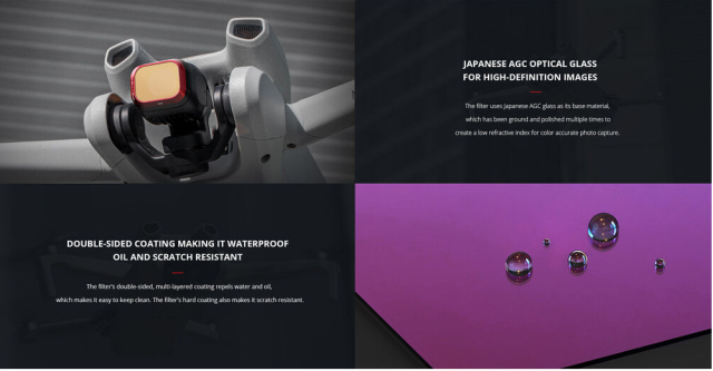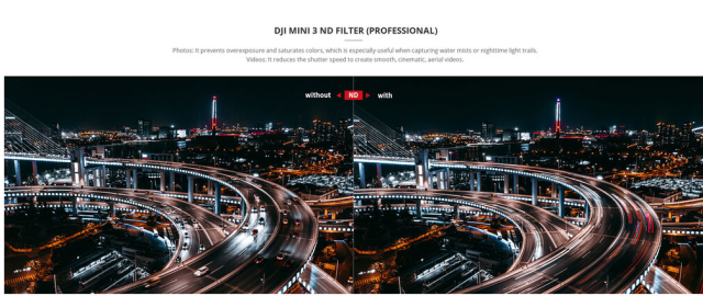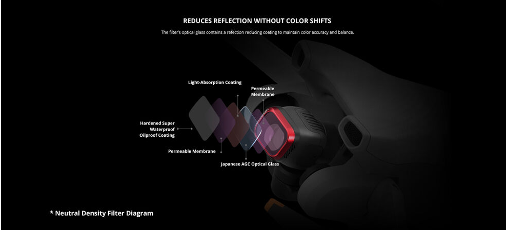 Vključeni štirje ND filtri: ND16 (4 stopnje), ND64 (6 stopenj), ND128 (7 stopenj), ND256 (8 stopenj)