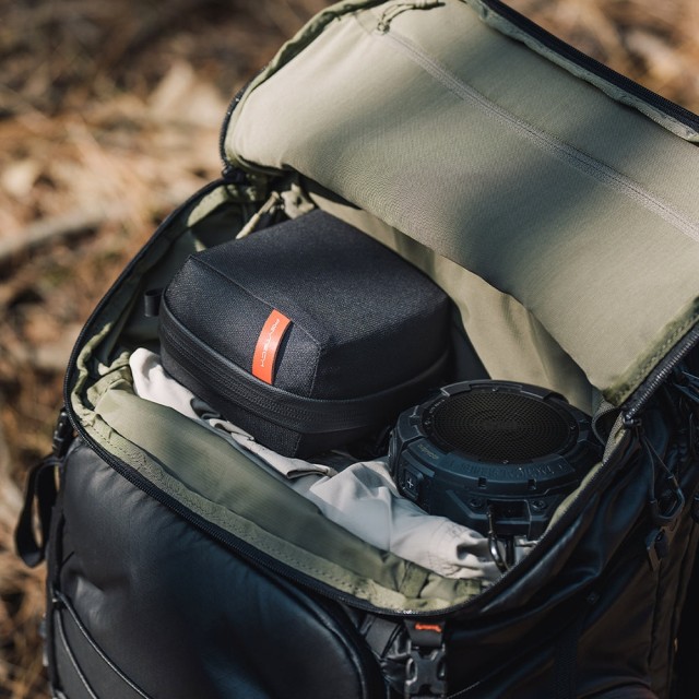 Zaradi svoje kompaktne velikosti se etui prilega v večino torb, nahrbtnikov in potovalnih fotografskih kovčkov. Zasnovan je za uporabo na terenu, kjer zagotavlja zanesljivo zaščito pred prahom, vlago in mehanskimi poškodbami. Trpežna zunanja lupina ima vodoodbojno prev leko in se zapira z magnetom, kar omogoča enostavno upravljanje z eno roko brez ogrožanja varnosti.