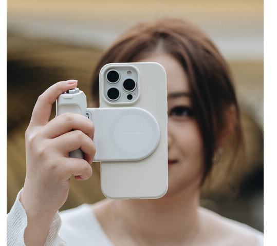 PGYTECH P-PG-036 MagCam Phone Grip je vsestranski, modularni držalo za pametne telefone, zasnovano za izboljšanje mobilne fotografije in videografije. Njegov magnetni nosilec MagSafe varno pritrdi združljive pametne telefone za vodoravno ali navpično snemanje in omogoča brezžično polnjenje med uporabo. Modularna zasnova držalo spremeni v stojalo, idealno za videoklice, vloganje ali ustvarjanje vsebin.