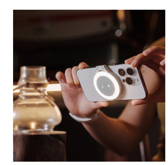 PGYTECH P-PG-012 MagGlow Phone Fill Light je prenosna LED-obročna luč, zasnovana za izboljšanje fotografiranja in snemanja videov s pametnim telefonom. Luč MagGlow je idealna za selfije, portrete, fotografiranje na mizi ali ustvarjanje priložnostnih vsebin, saj zmanjša sence na obrazu za gladek, naraven videz in doda bleščeč poudarek očem. Brez težav se poveže z MagCam-ovimi držali za telefone, telefoni in ovitki z MagSafe-om ali katero koli kovinsko površino za enostavno pritrditev.