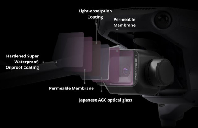 Vsak filter je izdelan iz japonskega optičnega stekla AGC z dvojnim premazom, brušen in poliran za nizek lomni količnik, kar zagotavlja natančno reprodukcijo barv in ostre slike za fotografije in videoposnetke. Vodoodporni, oljeodporni in odporni proti praskam premazi ščitijo steklo v zahtevnih letalskih okoljih. Filtri so nameščeni v lahkem, CNC-obdelanem aluminijastem okvirju, so odporni proti koroziji in natančno izdelani, da med letom ohranjajo ustrezno ravnovesje kardanskega obeska.