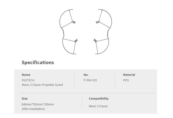 Zaščitne mreže za propelerje PGYTECH P-39A-020 za DJI Mavic 3 Classic povečajo varnost letenja, saj ščitijo propelerje, ljudi in okoliško lastnino. Te lahke zaščitne mreže so izdelane iz materiala z visoko upogibno trdnostjo in so idealne za letenje v zaprtih prostorih in za začetnike.