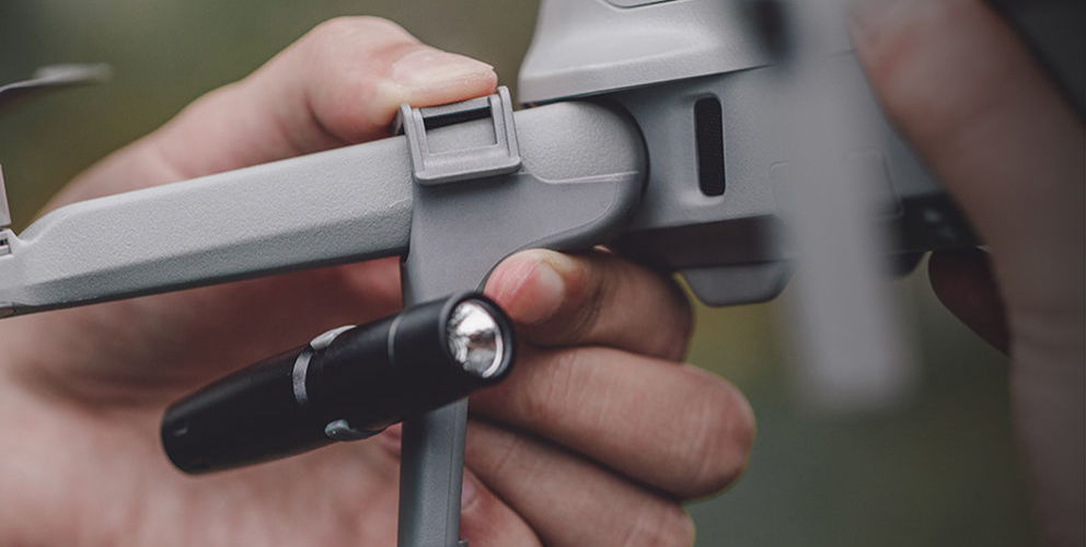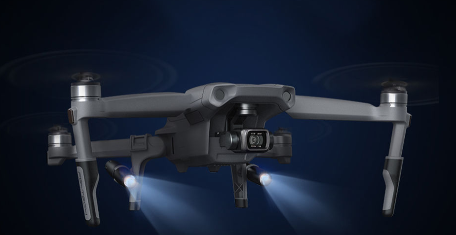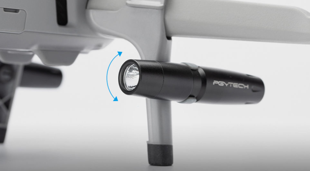 Vgrajene zadnje LED-luči zagotavljajo boljšo vidljivost okolice in pristajalne cone. Vsaka LED-luč ima štiri načine svetlosti – visoko, srednjo, nizko in utripajočo – in jo je mogoče za optimalno osvetlitev nagniti navzgor za 50° ali navzdol za 30°. Kljub dodatni funkcionalnosti celoten komplet doda le 54 g k teži vašega drona, kar ohranja letalske zmogljivosti.