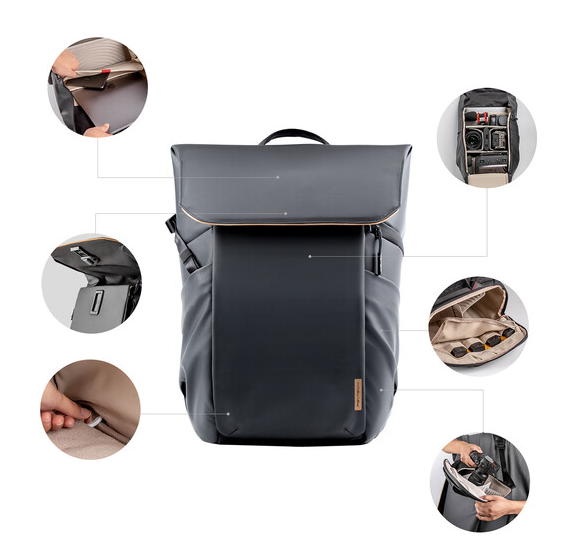 PGYTECH OneGo Air Backpack (25L, Obsidian Black) je potovalni, lahek nahrbtnik, zasnovan za fotografe, filmarje in ljubitelje dronov. Njegova 25-litrska vodoodporna zasnova ima široko odpiranje z YKK zadrgami, ki omogoča hiter dostop do vaše foto opreme, dronov, dodatkov in prenosnih računalnikov do 16". Notranjost nahrbtnika je opremljena s sistemom ModulePro z osmimi nastavljivimi predelki, ki omogočajo učinkovito organizacijo fotoaparatov, objektivov in opreme, več žepov pa ponuja prostor za baterije, AirTags in druge nujne predmete. Stranski in spodnji žepi, držala za stativ in magnetne zaponke omogočajo enostaven dostop do potrebnih predmetov, ko ste na poti. Material EVA, ki zmanjšuje pritisk, in oblazinjeni pas za prsni koš zagotavljata udobje med dolgimi potovanji, medtem ko so materiali, odporni proti brizganju, in zadrge, ki odvračajo tatove, poskrbeli za varnost vaše opreme.