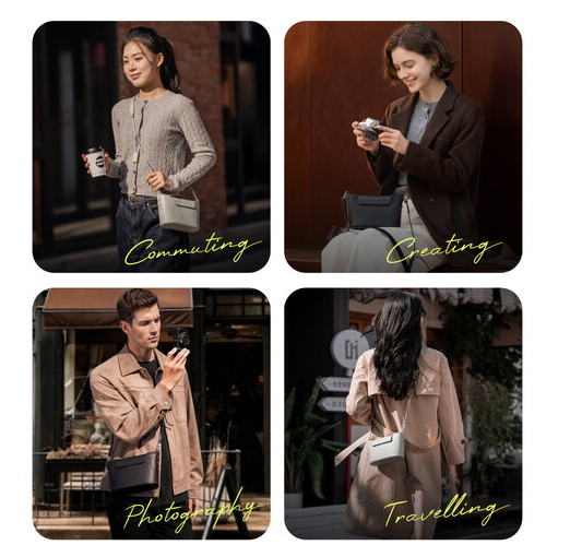 Notranjost z nastavljivimi predelki brez velcro trakov omogoča tiho in gladko prilagajanje brez drsnih zaponk. Magnetni zapirni jeziček omogoča hiter dostop z eno roko, hkrati pa varuje vašo opremo. Vgrajena krpica za hitro čiščenje leč zagotavlja, da ostanejo leče fotoaparata ali zaslon telefona brez madežev, skriti žep za AirTag pa zagotavlja dodatno mirno dušo med vožnjo v službo ali potovanjem. Torba je izdelana v elegantni črni barvi z nežnimi kovinskimi poudarki in udobnim ramenskim trakom, zato je idealna za vsakodnevno nošenje in ustvarjanje vsebin.