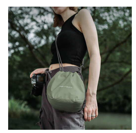 S torbo PGYTECH OneGo Drawstring Bag (Forest) lahko enostavno prenašate svojo foto opremo ali vsakodnevne potrebščine. Kompaktna, a zaščitna torba je primerna za majhne do srednje velike brezzrcalne fotoaparate, dodatne objektive in dodatke. Uporabljajte jo v roki, prek ramena ali kot foto kocko v večji torbi, opremljeno z varnostnimi zaponkami in skritim žepom za AirTag.