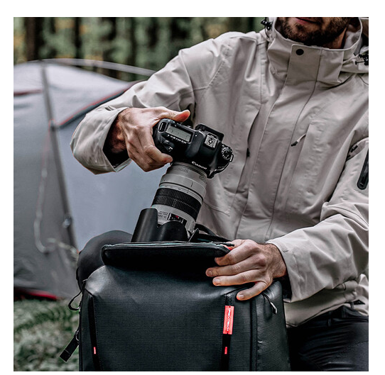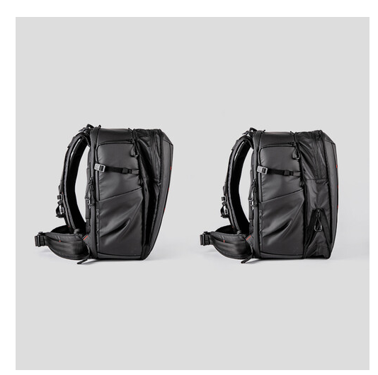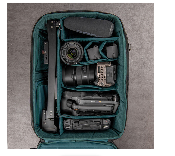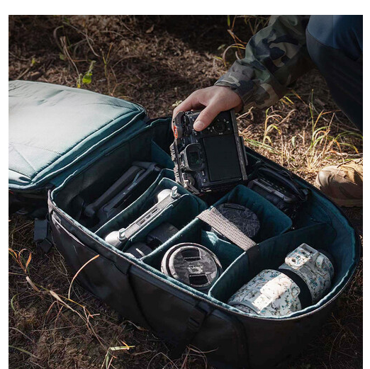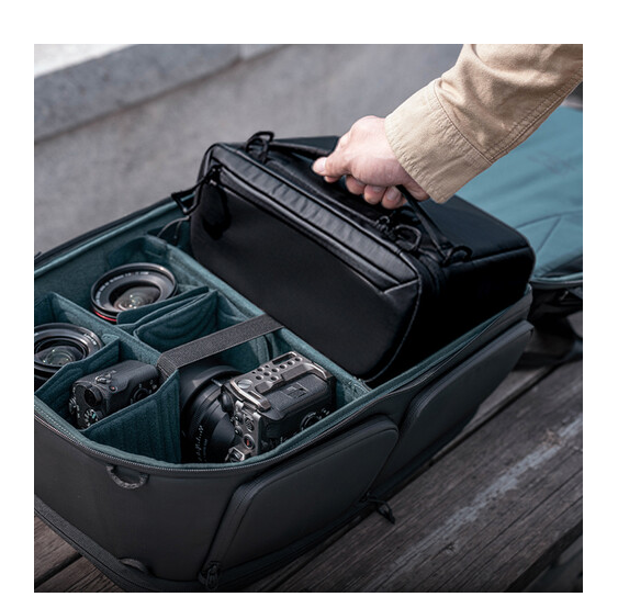 Njegova znanstveno strukturirana notranjost ima debele, prilagodljive predelke z zaponkami, ki varno organizirajo ohišja fotoaparatov, objektive, drone in osebne predmete. Nadgrajeni sprednji predal podpira razširitev v obliki črke V in H, kar omogoča enostavno namestitev stabilizatorjev gimbal in večjih dodatkov. Široko zadnje odprtino omogoča ravno pakiranje za hitro namestitev in učinkovit dostop, medtem ko vam zgornji in desni hitri dostop omogočata, da vzamete objektive z dolgim fokusom, ne da bi morali odstraniti torbo.