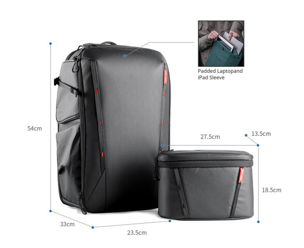 Nahrbtnik PGYTECH OneMo 2 je vsestranski nahrbtnik za kamero z veliko prostornino in torba preko ramena, prilagojena fotografom in ustvarjalcem vsebin, ki potrebujejo stil, organizacijo in vzdržljivost. Z notranjostjo prostornine 35 litrov ponuja prostor za opremo za kamero, drone, gimbale, objektive in vsakodnevne potrebščine. Sprednji predal omogoča razširitev v obliki črke V in H, kar je idealno za namestitev stabilizatorjev gimbalov ali drugih večjih dodatkov. Debele, prilagodljive notranje predelne stene omogočajo varno in prilagodljivo organizacijo, medtem ko dostop na vrhu in desni strani omogoča hiter dostop do objektivov z dolgim fokusom.