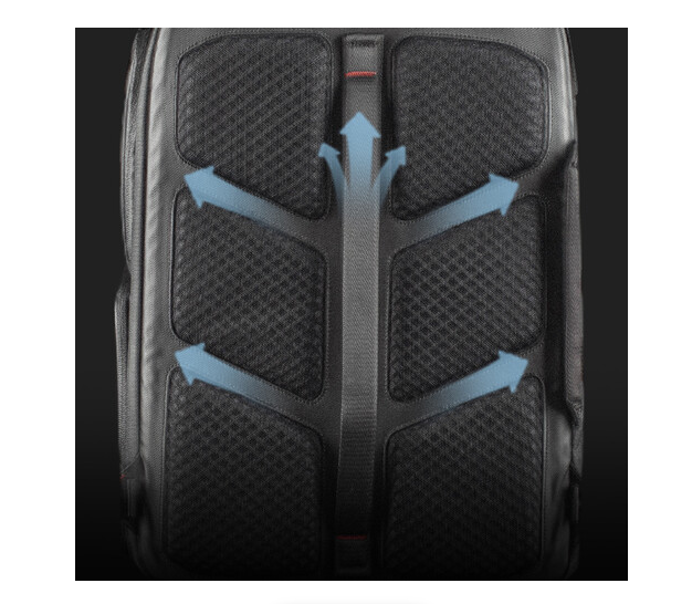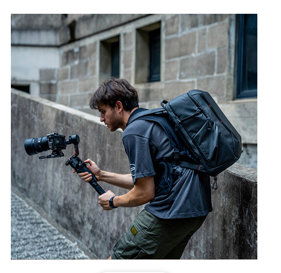 Nahrbtnik ima stranski žep za hiter dostop do nujne opreme, trakovi za stativ, skriti žep za AirTag in dodatni prostor za shranjevanje baterij. Ergonomski elementi, vključno z oblazinjenimi ramenskimi trakovi, pasom za pas in prezračevanim hrbtnim delom, zmanjšujejo pritisk med daljšim nošenjem. Več ročajev na vrhu, straneh in zadnji strani omogočajo enostavno dviganje in rokovanje, kar je idealno za potovanja, snemanje na lokaciji ali vsakodnevno potovanje v službo.
