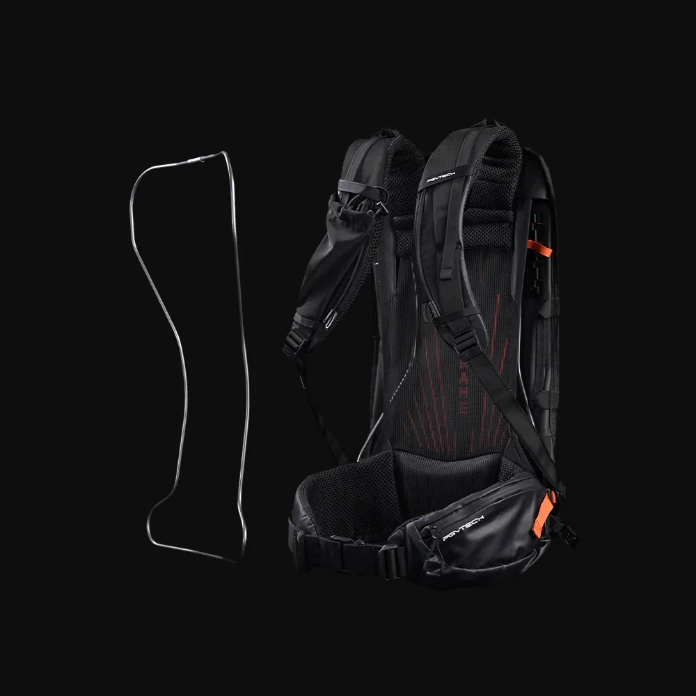Nahrbtnik je izdelan iz vodoodporne tkanine Cordura s PU-premazom, ki zanesljivo zdrži neugodne vremenske razmere. Ergonomski 3D-oblikovani ramenski in pasni trakovi skupaj s 3D-okvirjem iz letalskega aluminija, ki porazdeli breme in podpira hrbet, zagotavljajo maksimalno udobje pri nošenju.