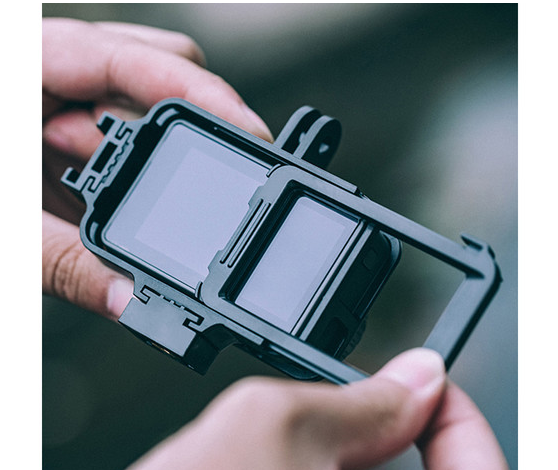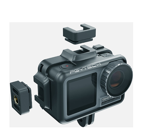 PGYTECH Camera Cage za Osmo Action ponuja obliko, ki se prilega, z več pritrdilnimi mesti za dodatke, kar vam omogoča pritrditev mikrofonov, luči in ročajev, hkrati pa ohranja popoln dostop do zaslona in upravljalnih elementov kamere.