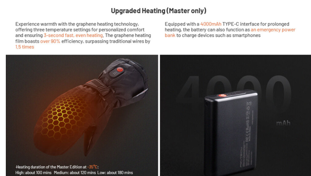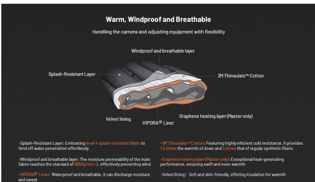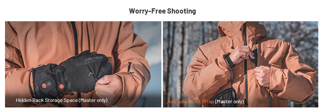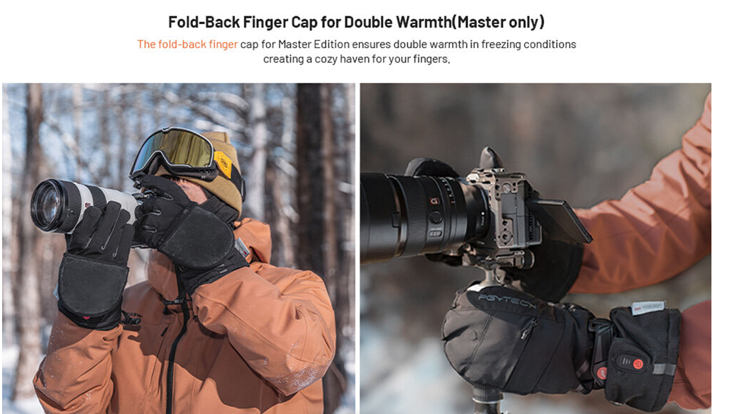 PGYTECH Battery-Heated Master Photography Gloves rokavice z ogrevanjem na baterije ohranjajo vaše roke tople, suhe in odzivne v ekstremnem mrazu. Opremljene so s tehnologijo ogrevanja iz grafena, zložljivimi pokrivki za prste in dvojnimi baterijami s kapaciteto 4000 mAh. Narejene so za fotografe, ki delajo v mrzlih razmerah, ne da bi pri tem žrtvovali nadzor.