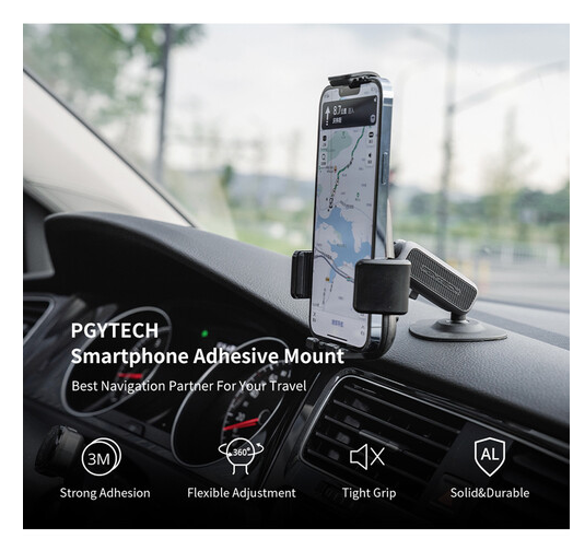 S pomočjo PGYTECH Full Wrap Smartphone Adhesive Mount lahko svoj pametni telefon varno pritrdite na skoraj vsako ravno površino. Opremljen je z izjemno močnim 3M VHB lepilom, dvojno kroglico in ročajem, ki se lahko vrti za 360°, kar omogoča stabilno, nastavljivo in prostoročno pozicioniranje telefona med vožnjo, snemanjem ali vsakodnevno uporabo.