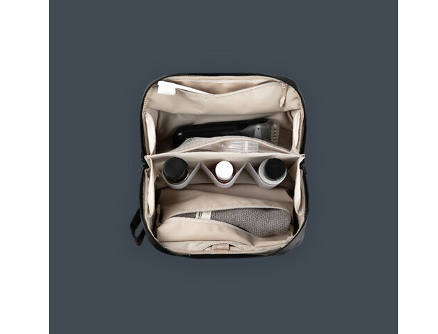 PGYTECH P-CB-097 Wash Pouch je zasnovan tako, da vaše toaletne potrebščine ostanejo lepo organizirane in zaščitene. Njegov inovativen sistem ločevanja mokrih in suhih predmetov uporablja dva vodotesna notranja žepa, ki preprečujeta, da bi se voda pomešala s suhimi predmeti. Elastične zanke varno držijo potovalne stekleničke šampona, gel za tuširanje ali losjon, medtem ko so v posebnih žepih prostora za zobno ščetko, britvico in zobno nitko. Zunanjost in notranjost sta izdelani iz tkanine, odporne proti brizganju, in podloženi z materialom, ki se lahko obriše.