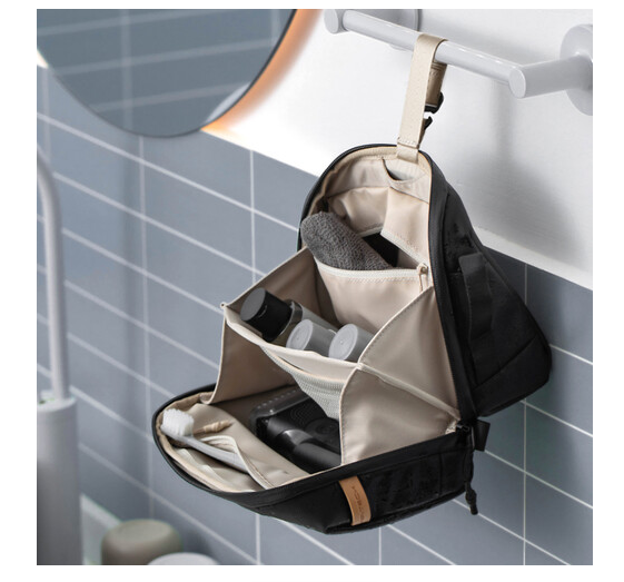 Zavihljiv kavlje omogoča, da torbico obesite na tuš palico ali nosilec za brisače, da je lahko dostopna, stranski ročaj pa zagotavlja udoben prevoz. Z YKK vodoodpornimi zadrgami in več predali je torbica za toaletne potrebščine idealna za potovanja, kampiranje ali vsakodnevno uporabo.