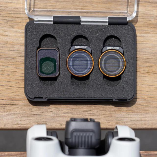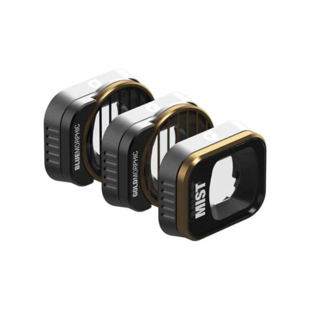 Komplet učinkov predfiltra za dron DJI Mini 3 Pro, ki vključuje filtre BlueMorphic, GoldMorphic in Mist [1/4] za ustvarjalno delo z bleščicami oziroma teksturo slike. Tako kot drugi filtri PolarPro, zasnovani za dron DJI Mini 3 Pro, ponujajo trdno konstrukcijo z aluminijastim okvirjem in v Nemčiji izdelanim trpežnim steklom CinemaSeries Glass za zaščito objektiva.