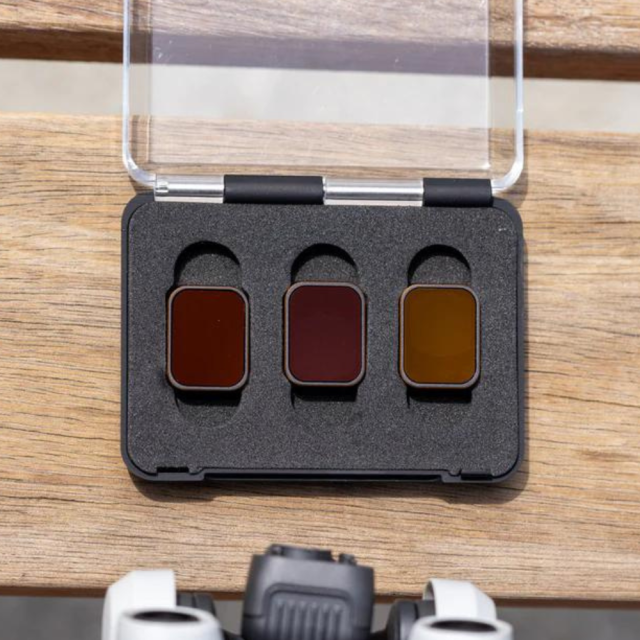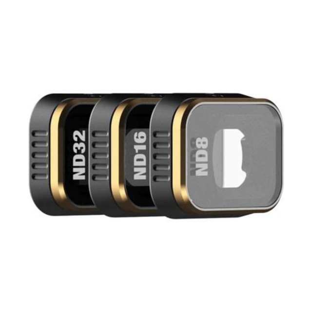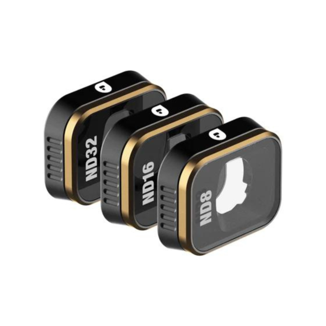 Komplet 3 predfiltrskih ND filtrov za dron DJI Mini 3 Pro z vrednostmi ND8, ND16 in ND32 ter visokokakovostnim in trpežnim steklom CinemaSeries. Filtri ND omogočajo snemanje visokokakovostnih slik tudi pri močni sončni svetlobi in so nepogrešljiv pripomoček za fotografiranje opoldne. Trpežno steklo prav tako ščiti objektiv drona med padci.