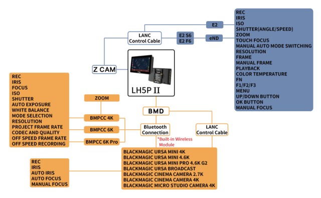 LH5P II je 5,5-palčni monitor za kamero z zaslonom IPS z ločljivostjo 1920 × 1080 pik, svetlostjo 2200 cd/m2 in kontrastnim razmerjem 1000 : 1, vhodom/izhodom HDMI s podporo do 4Kp24/UHDp30, trdnim ohišjem iz aluminijeve zlitine in funkcijo oddaljenega upravljanja kamere (brezžično prek povezave Bluetooth ali po izbiri s kabli, odvisno od vrste kamere).