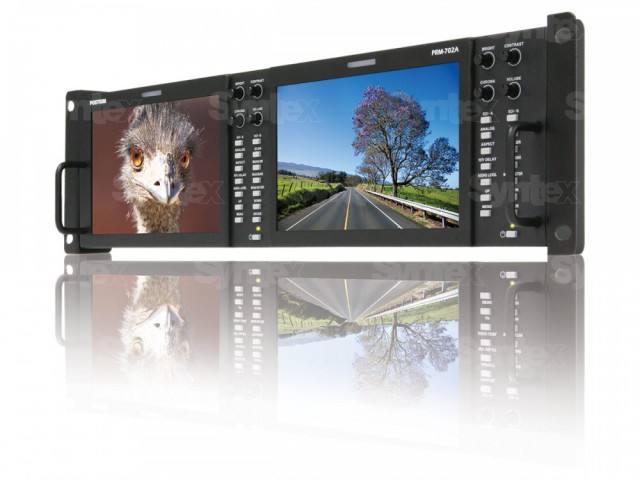 7-palčni večpredstavnostni monitor z dvojnim zaslonom LCD v stojalu.