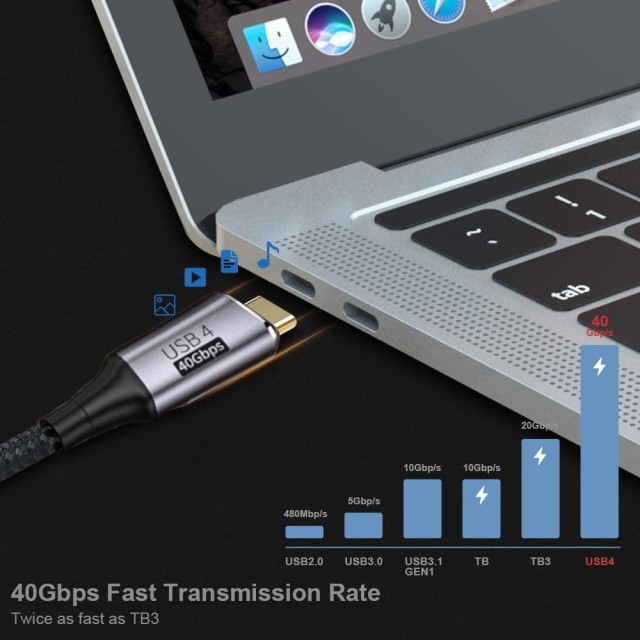 - Hitrost prenosa: 40 Gbit/s, do 80-krat hitreje kot pri standardnem USB2.0
