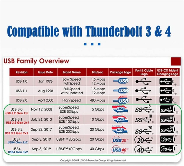 - Povratna združljivost z USB3.2, USB3.0, USB2.0 in Thunderbolt 3