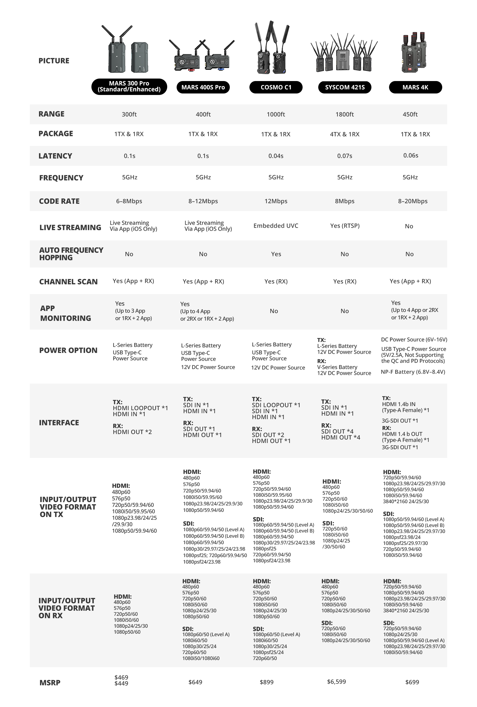 Primerjava video oddajnikov Hollyland