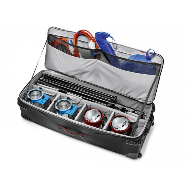 Ta izjemno velik mobilni organizator Pro Light LW-99-2 je odlična rešitev za shranjevanje opreme za razsvetljavo. Opremljen je s sistemom za zaščito kamere, ki absorbira udarce in odbija vse udarce, na katere lahko naletite na poti, ter tako zagotavlja dodatno zaščito vaše svetlobne opreme. Ima debelejši stranski ročaj, dve zadnji transportni kolesi in zgornji ročaj. Prav tako vas na poti ne bo obremenjeval, saj je izdelan iz lahkih materialov.