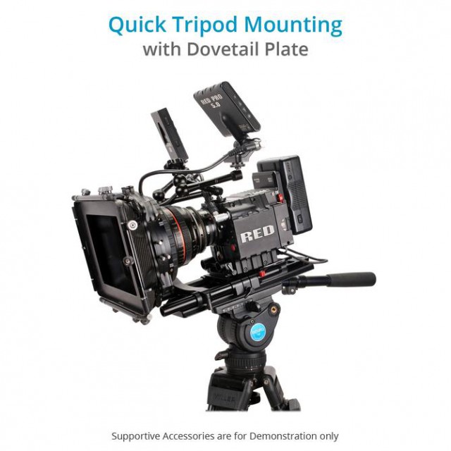 Na to vsestransko osnovno ploščo lahko preprosto pritrdite kateri koli fotoaparat, na primer težke fotoaparate, kot je ALEXA, ali lahke fotoaparate, kot je Sony F5.
