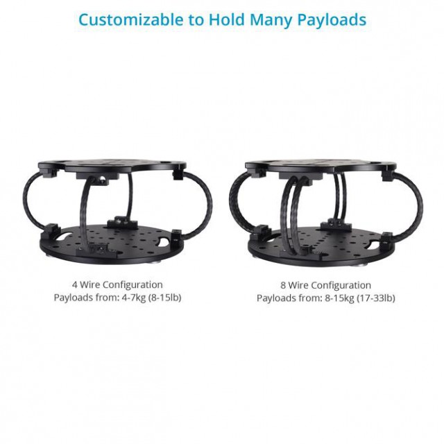 Sistem izolatorja absorbira udarce, udarce in poskočne premike vozila s strateško konfiguriranimi žičnimi kabli 5/16", ki podpirajo gimbal in mu omogočajo, da absorbira vztrajnostne premike. Izolator v povezavi s kardanskim obročem kamere zagotavlja neverjetno gladke posnetke tudi na neravnem terenu. Žične module je mogoče prilagoditi glede na težo nastavitve kamere in želeni posnetek.