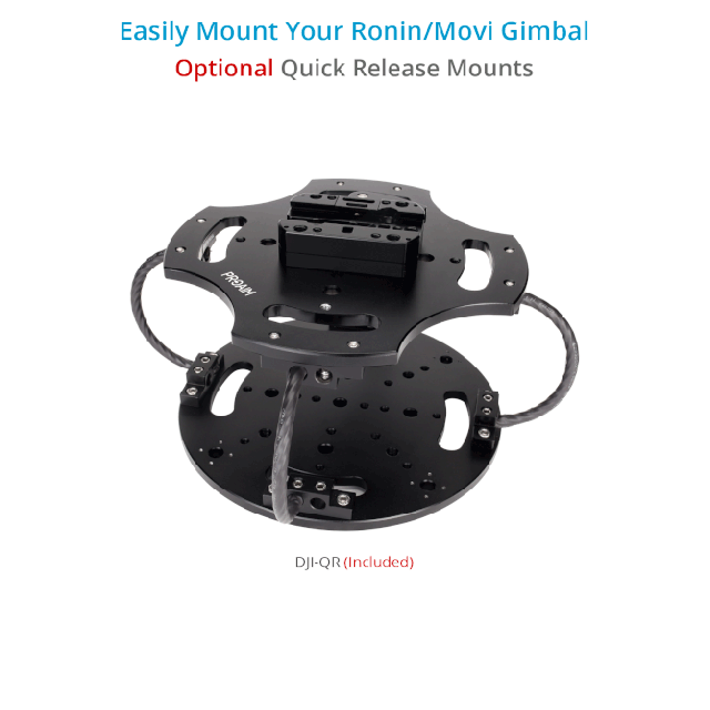 Ta pametna, zanesljiva in robustna zasnova, izdelana iz visokokakovostnih aluminijevih zlitin, lahko prenese od 4 kg/8 lb do 15 kg/33 lb koristnega tovora. Sistem izolatorja je združljiv s sistemi Ronin, Movi in vsemi drugimi pomembnejšimi gimbalnimi sistemi, ki so danes na voljo, kar vam omogoča svobodno uporabo različnih nastavitev glede na potrebe snemanja.