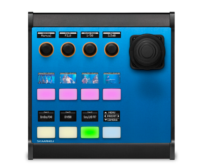 SKAARHOJ PTZ View z vgrajenim Blue Pill (modra barva) je kompakten, profesionalni krmilnik za PTZ-kamere, opremljen z visoko natančnim joystickom na Hallovem efektu, upravljalnimi elementi z OLED-zaslonom in vgrajenim procesorjem Blue Pill. Zasnovan je za nemoteno premikanje, nagibanje in zumiranje ter ponuja intuitivno upravljanje in povezljivost PoE za poenostavljene delovne tokove pri produkciji v živo in oddajanju.
