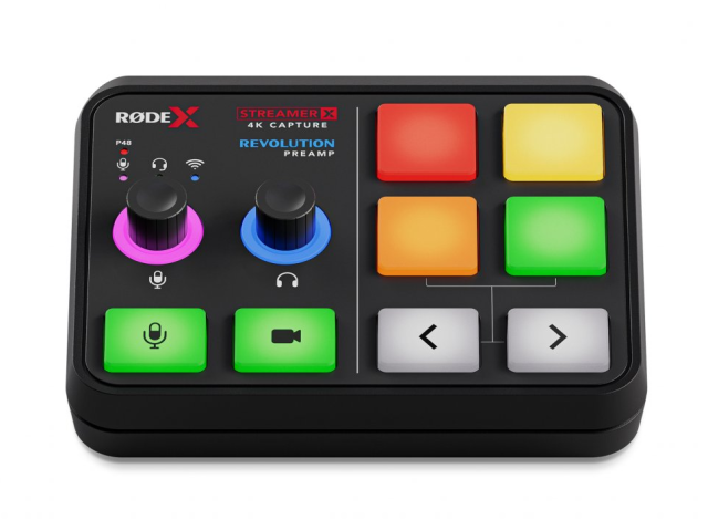 RØDE Streamer X je profesionalna avdio/video konzola "vse v enem", ki združuje video kartico in zvočni vmesnik v prefinjeni nadzorni plošči. Ponuja video 4K30 in prehod 4K60 prek vmesnika HDMI, podporo za spremenljivo hitrost osveževanja, studijski predojačevalnik Revolution Preamp™ s kombiniranim priključkom Neutrik®, notranjo enoto APHEX® DSP, kombinirani vhod XLR/TRS za mikrofon/instrument, vhod TRRS 3,5 mm za priključitev slušalk, 6.3 mm izhod TRS za slušalke, vgrajen brezžični sprejemnik za brezžične naprave RØDE IV (vključno z Wireless GO II in Wireless ME), dva vmesnika USB-C za povezavo z dvema računalnikoma ali mobilnima napravama, štiri ploščice SMART Pads za sprožanje zvokov, zvočnih učinkov FX in drugih računalniških