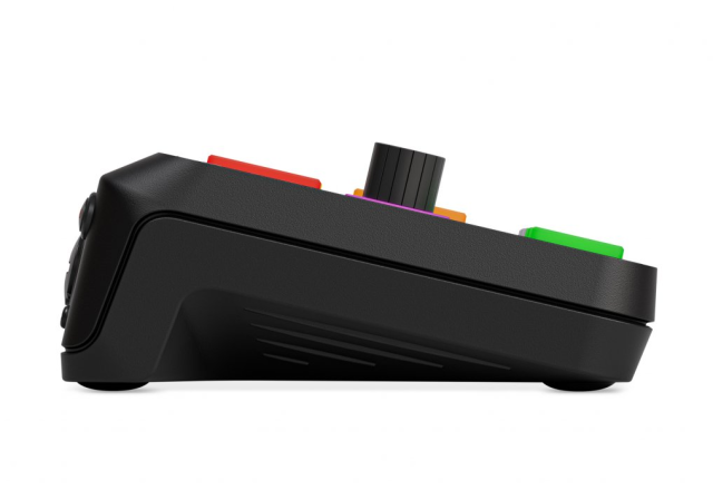 Krmilniki: Štiri programirljive in barvno osvetljene ploščice SMART omogočajo sprožanje zvokov, učinkov FX na vhodni signal in izvajanje drugih dejanj v računalniku med pretakanjem. S tem omogočite, da postane vaš tok interaktiven in se neposredno odziva na različne situacije.