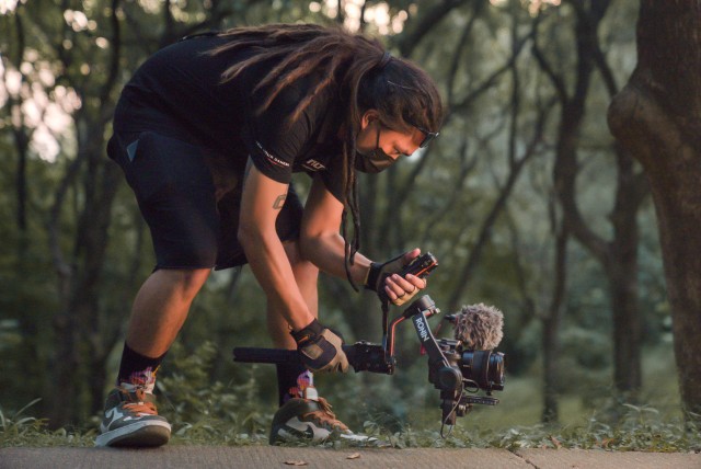 Joystick na zadní ovládací rukojeti vám poskytuje plnou kontrolu nad hlavou gimbalu RS 2 a prstové kolečko vám umožňuje ovládat buď bezdrátový zaostřovací motor DJI, nebo Tilta Nucleus M a Nano.