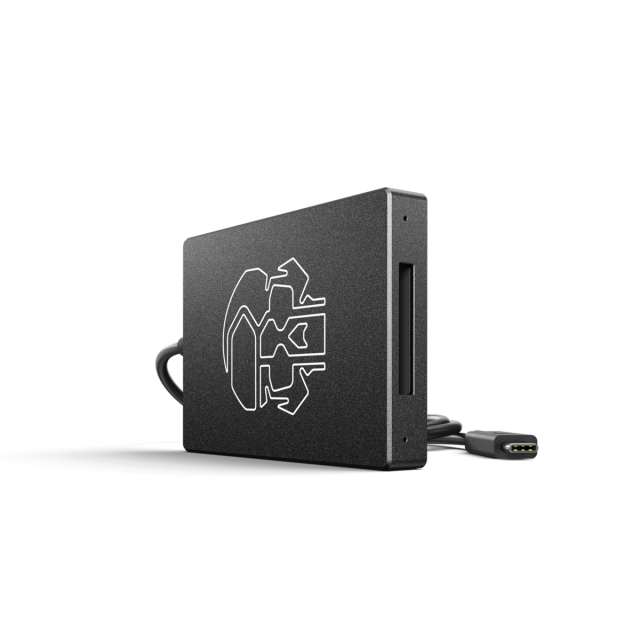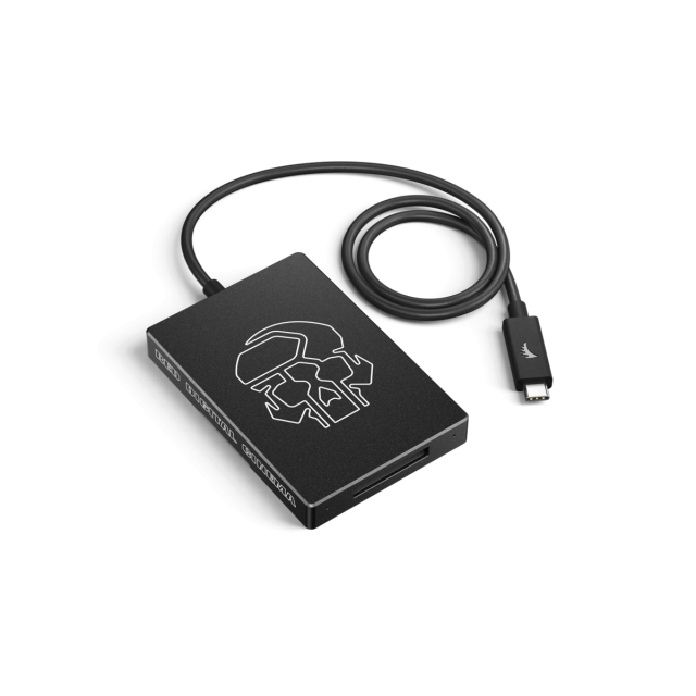 Čitalnik kartic RED® CFexpress je zasnovan izključno za prenos podatkov z medijskih kartic RED® PRO CFexpress 660 GB in 2 TB na delovno postajo. S kamero se povežite prek USB 3.2 Gen 2x2 za hiter vnos podatkov CFexpress (20 Gb/s).