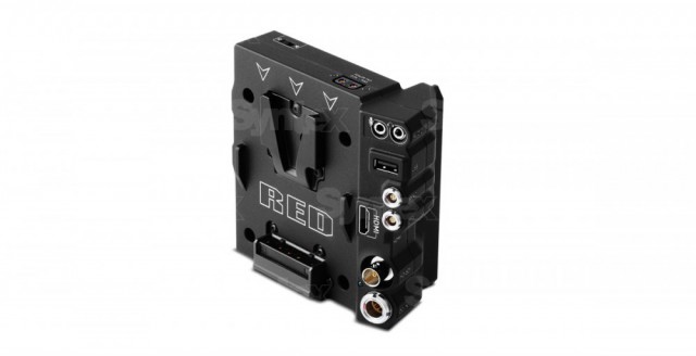 Razširjevalnik DSMC2 V-Lock I/O je opremljen s številnimi standardnimi vhodi/izhodi in režo za baterije V-Lock, ki omogoča napajanje kamer serije DMSC2 z baterijami, npr. RED BRICK. Modul, izdelan iz močne in lahke magnezijeve zlitine, se priključi na zadnjo stran kamere in ponuja vhod za napajanje (DC IN), izhod HDMI 1.2 (tip A), izhod 3G-SDI (HD-SDI, BNC, impedanca 75 ohmov), vhoda CTRL in SYNC (2x štiripolni konektorji 00B LEMO s podporo za časovno kodo in signal genlock), izhod AUX Power (dvopolni ženski P-Tap), izhod USB Bus (tip A, 5 V pri 1,5 mA, npr. za napajanje oddajnikov HDMI ali majhnih mobilnih naprav), 3,5-milimetrski izhod za slušalke in stereo linijski izhod, prav tako na 3,5-milimetrskem priključku. Modul ponuja možnost samodejnega zagona fotoaparata, ko je napajanje priključeno na vhod DC IN. Ta funkcija omogoča enostaven zagon/izklop fotoaparata, ne da bi bilo treba fizično rokovati z ohišjem fotoaparata. Opomba: Zgornji ročaj DSMC2 ni popolnoma združljiv s tem modulom, če je priključen tudi paket baterij. Združljivost z WEAPON, SCARLET-W, RAVEN.