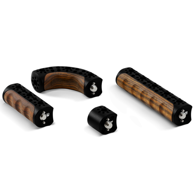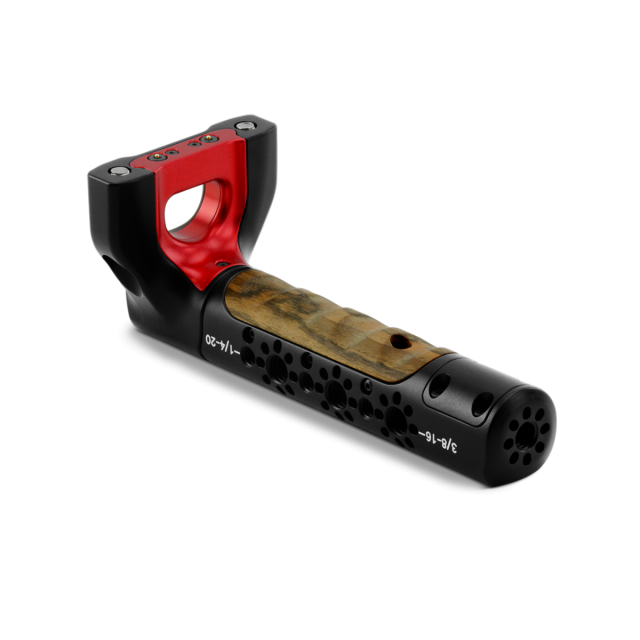Vrhnji ročaj V-RAPTOR™ ima poseben gumb za zagon/zaustavitev, ergonomske vložke iz lesa Bocote in več pritrdilnih točk 3/8-16 in 1/4-20. Poleg tega vključuje 1", 3" in 5" podaljške zgornjega ročaja, kolenski del in 15 mm nosilec za monitor.